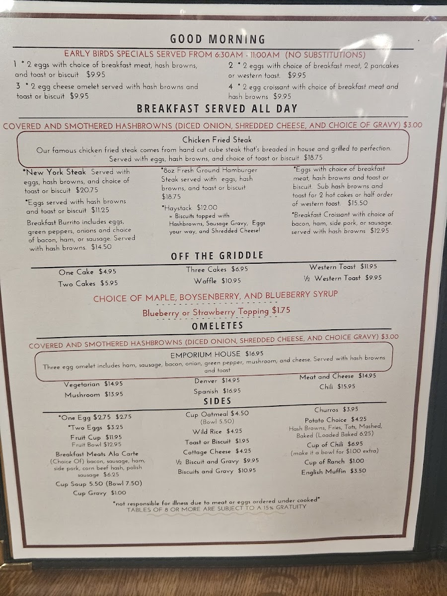Our famous chicken fried steak comes from hand cut cube steak that's breaded in house and grilled to perfection. Served with eggs, hash browns, and choice of toast or biscuit